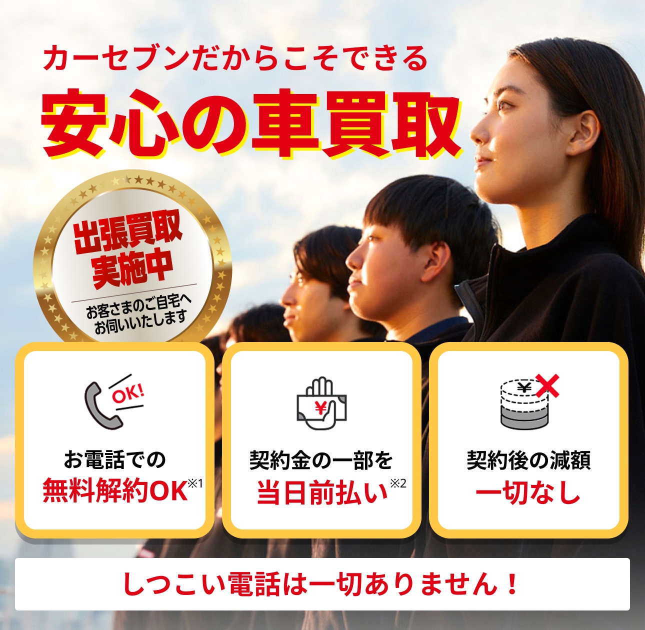 カーセブンではお客様に安心して取引を行っていただくため「ご契約後の減額は一切しません」という宣言を掲げております。 -